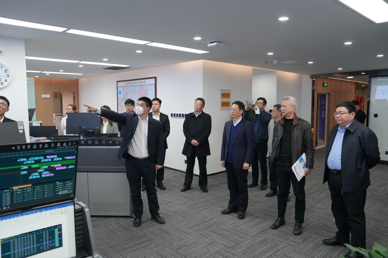 座谈结束后,景国勋、郭秋平一行参观了中原龙浩航空有限公司AOC运控大厅,实地考察了中原龙浩航空公司的运行情况。
