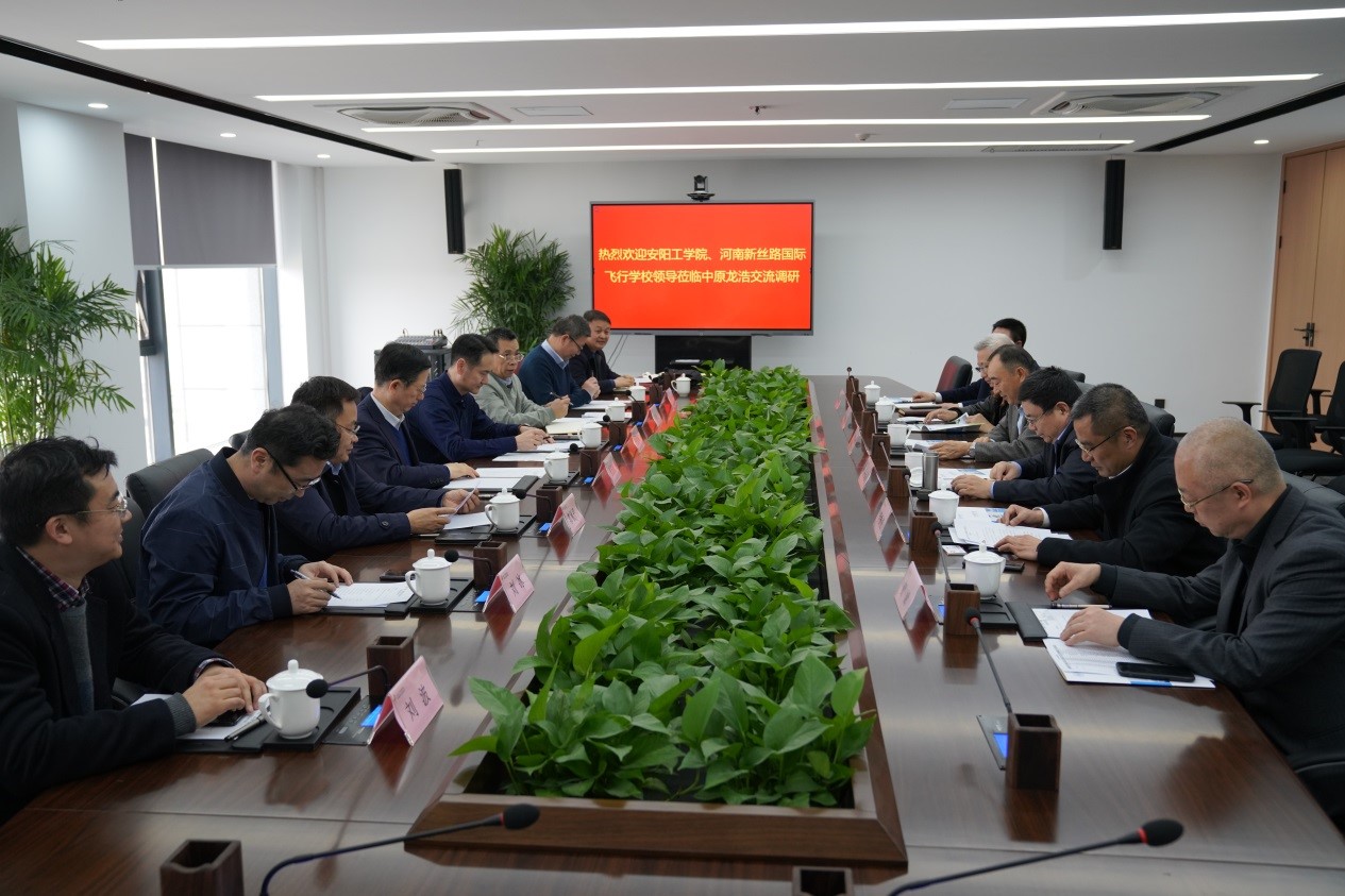 3月17日,校长景国勋、副校长郭秋平应邀到郑州中原龙浩航空有限公司总部考察调研。河南民航发展投资有限公司副总经理乔长恩、中原龙浩董事长郭建业、党委书记李振亮、河南新丝路国际飞行学校有限公司董事长张海峰等人陪同调研,校长办公室、飞行学院等相关部门负责人参加调研。