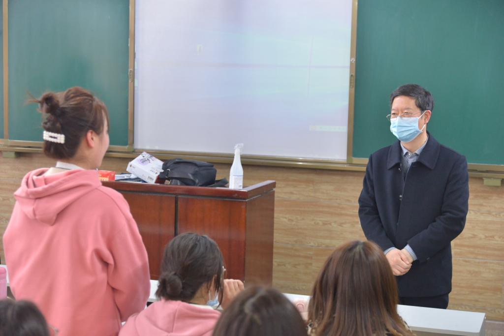 校领导一行先后到A01、A17、A18教学楼检查上课情况,并与任课老师、学生代表亲切交流,详细询问老师上课准备情况、教学设施运行情况、课程安排情况、学生到课情况等。检查过程中,校领导对开学第一课的良好秩序和任课教师利用疫情防控育人因素开展课程思政表示满意,并叮嘱教务处等相关部门负责人要切实做好课程安排,保障教学设施运行良好,积极服务好教学工作,确保各项教育教学活动有序进行。
