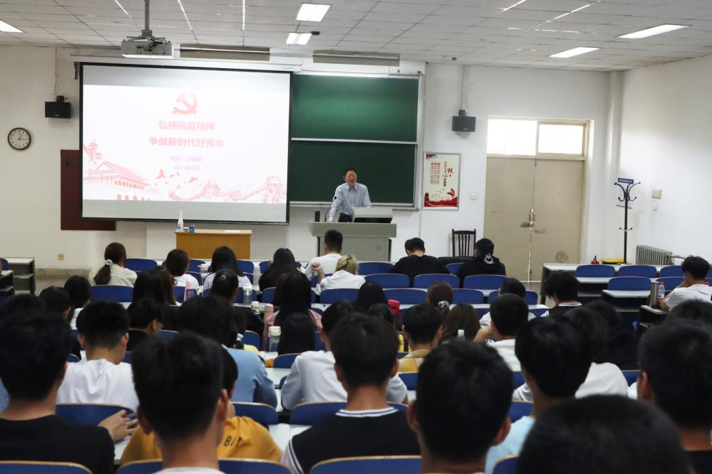课堂上,景国勋围绕《弘扬抗疫精神,争做新时代好青年》这一主题,回顾了中国共产党团结带领全国人民开展新冠肺炎疫情防控阻击战的伟大历程,对比了中西方抗疫斗争的举措及取得的成效,并结合近年来中国经济发展取得的显著成就以及世界对中国抗疫援助行动的高度评价,引导同学们进一步深刻认识党中央决策之正确、深刻理解中国共产党领导和中国特色社会主义制度的显著优势,进一步坚定“四个自信”,并号召同学们积极参加“把灾难当教材、与祖国共成长”主题教育活动,学习抗疫英雄的先进事迹,弘扬伟大的抗疫精神,把疫情危机转化为成长成才的契机。