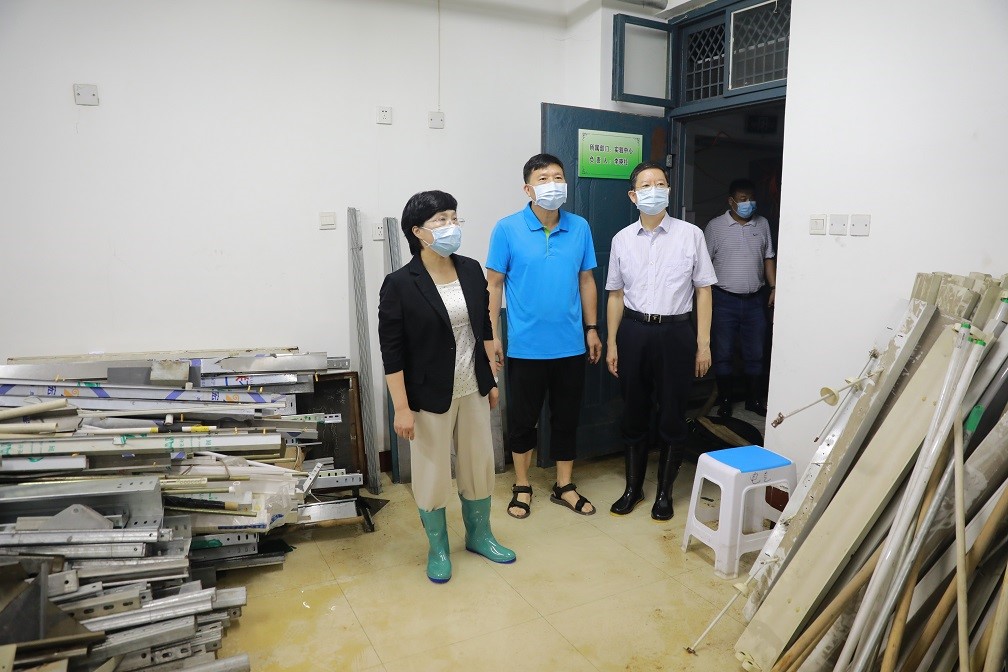 张玲在我校电气学院地下室调研受灾情况