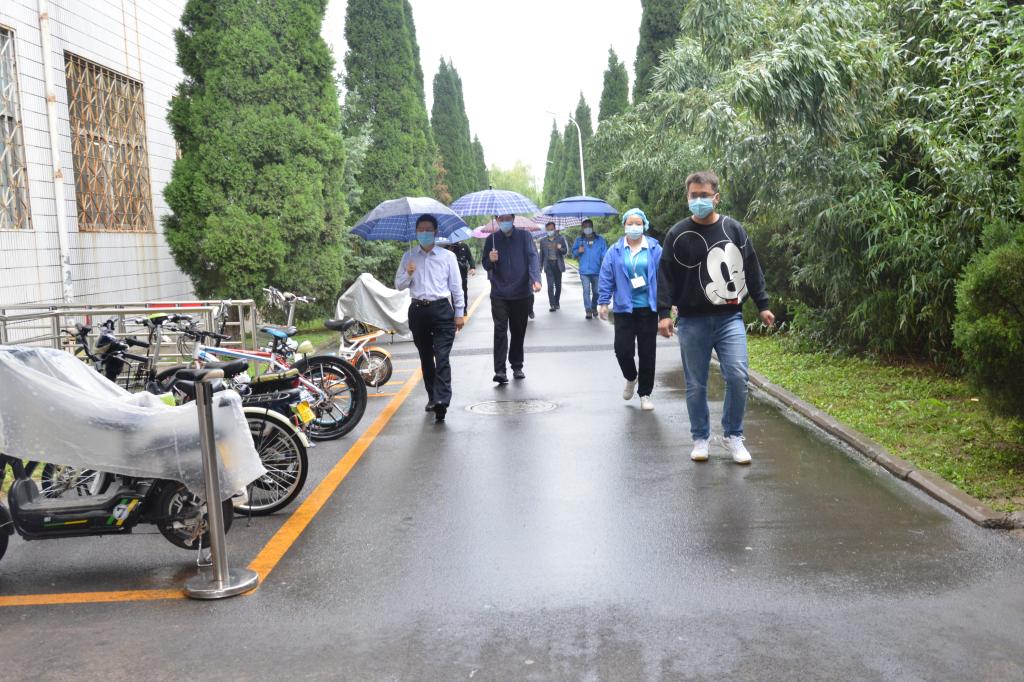 本次演练在善工苑学生公寓和A02教学楼分别进行,现场由工作人员临时扮演“发热”学生,启动应急处置预案,由学生公寓管理员、上课班级班长分别联系学生辅导员、教学楼三级网格长,带领“发热”学生到A01东配楼隔离室进行隔离观察;同时由学校医务室联系定点医院,安排专车接送学生到医院进行进一步检测和治疗。整个演练过程井然有序,各部门协调联动、配合到位。校领导一边观摩演练,一边与各部门负责人、现场工作人员深入交流,详细了解开学准备和各项防疫举措落实情况。此外,校领导一行还到学校大门口、雅苑餐厅等处检查指导疫情防控工作。
