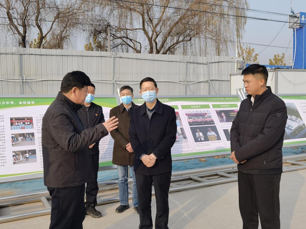 在翔宇康博园施工现场,景国勋详细询问了康博园的整体规划、项目建设进度,并指出康复产业技术研究院要积极对接,加快康复医疗产品研发,争取在翔宇康博园进行产业化。