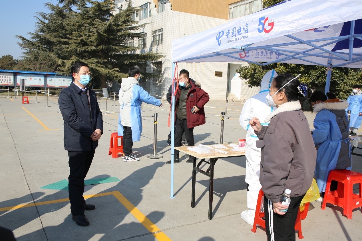 校领导一行先后到校门口、各学院审核点、一号餐厅、善工苑学生公寓、A19教学楼、图书馆、行知苑学生公寓、校内核酸检测点等处,现场检查指导疫情防控、学生返校、教学设备保障、物资储备、环境卫生、安全隐患治理等各项工作,听取各部门负责人、现场工作人员的汇报,并与返校学生亲切交谈,认真听取学生对于返校工作的意见和建议。