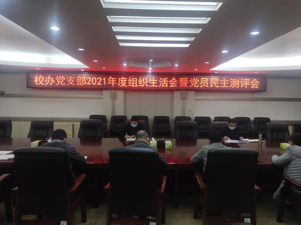 3月31日下午,校办党支部召开2021年度组织生活会暨党员民主评议会,支部书记刘冰主持会议,校长景国勋以普通党员身份参加。