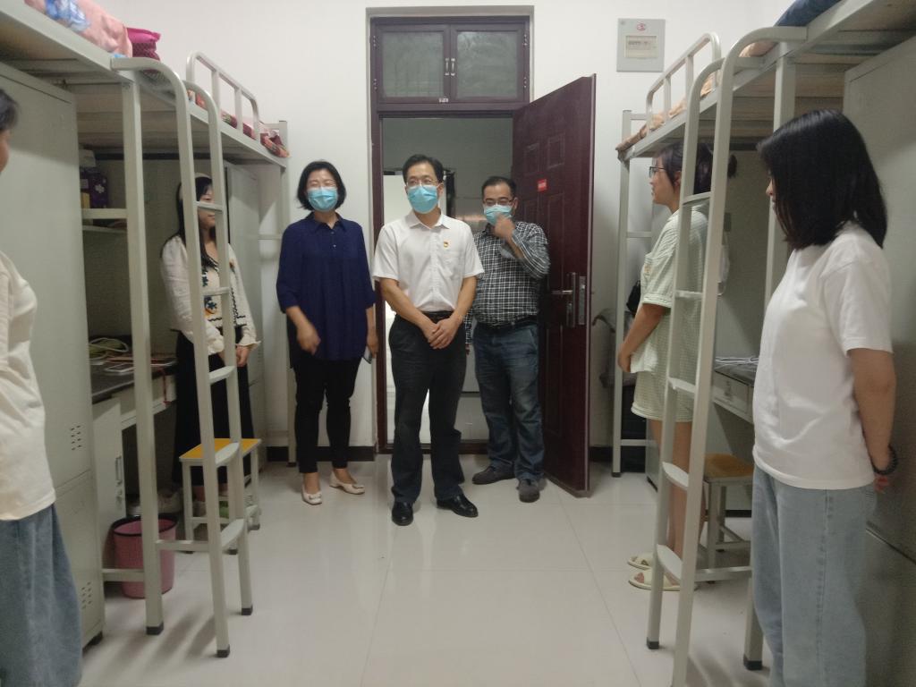 会后,牛晓玉在商学院负责人的陪同下前往善工苑学生宿舍走访慰问,并与同学们进行沟通交流。他叮嘱同学们做好个人防护,遵守学校疫情防控纪律;有困难和需要帮助的地方,要及时反映,学校会协调解决相关问题,给同学们创造一个和谐稳定的校园环境。