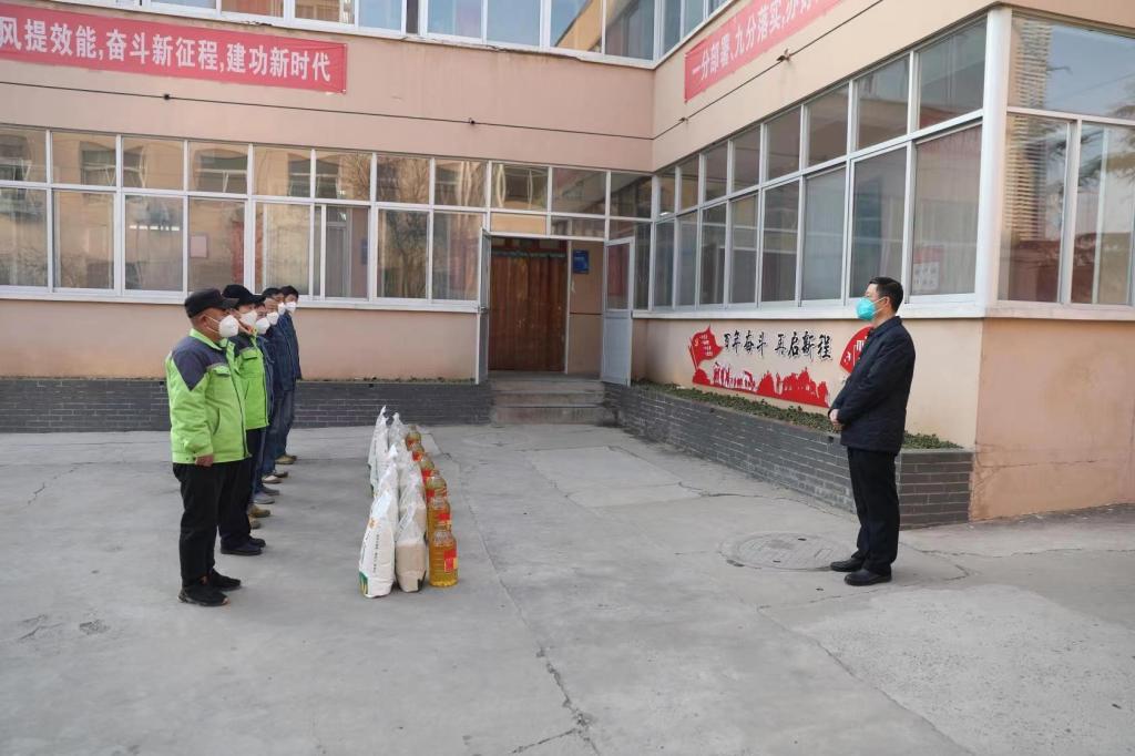 景国勋代表学校向坚守一线的工作人员发放了米、面、油、水果、火腿肠等节日慰问品,对节日期间坚守一线的工作人员表示感谢,对他们在疫情防控及各项重大活动中为师生健康和学校正常工作、生活秩序作出的重大贡献给予高度赞扬。景国勋勉励一线工作人员要继续坚持优良作风、发扬奉献精神,为师生欢度春节提供坚实保障。