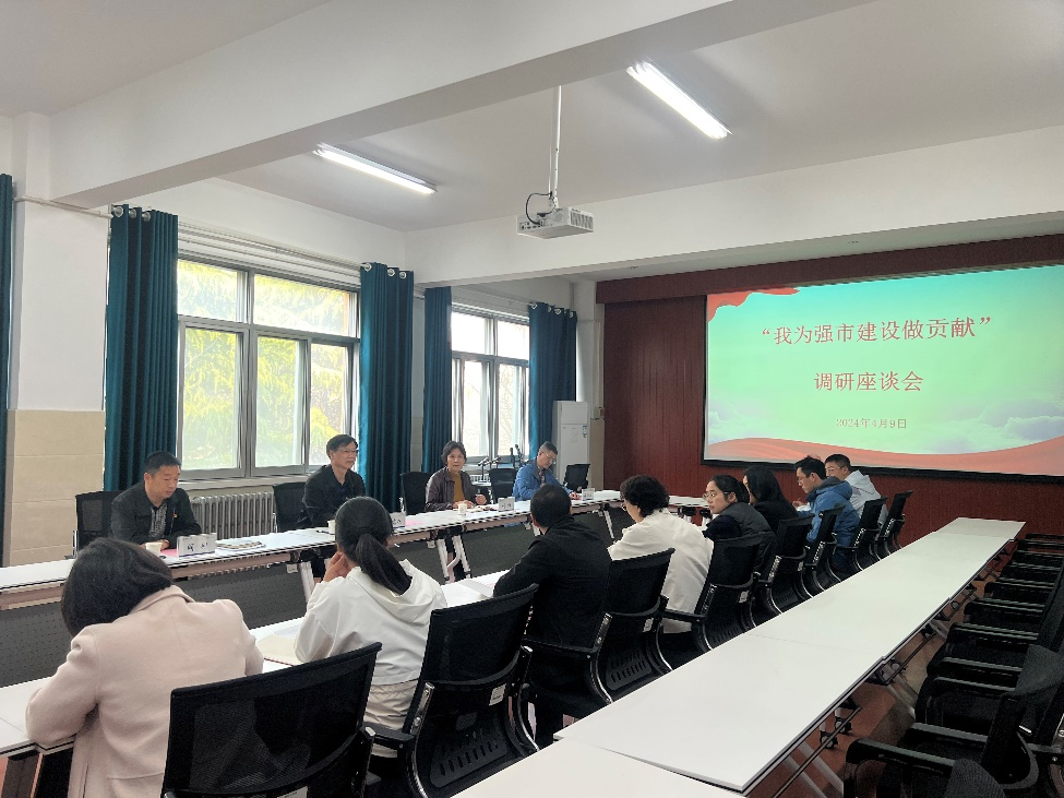 4月9日下午,校党委副书记牛瑞庆一行到马克思主义学院进行调研,组织召开“我为强市建设做贡献”座谈会。校工会副主席刘伟、阎利陪同调研。马克思主义学院领导班子、教研室主任及教师代表参加调研座谈会。