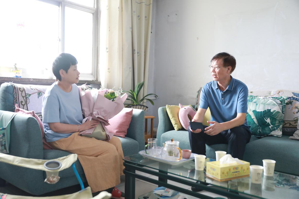 在秦苒家中,牛瑞庆详细询问了她的身体状况和生活情况,鼓励她保持积极乐观的心态面对生活和工作,并指出各部门要加大对困难教师的关心关怀力度,帮助他们办实事、解难事。秦苒感受到了组织的温暖与关心,对学校领导的关怀表示感谢。