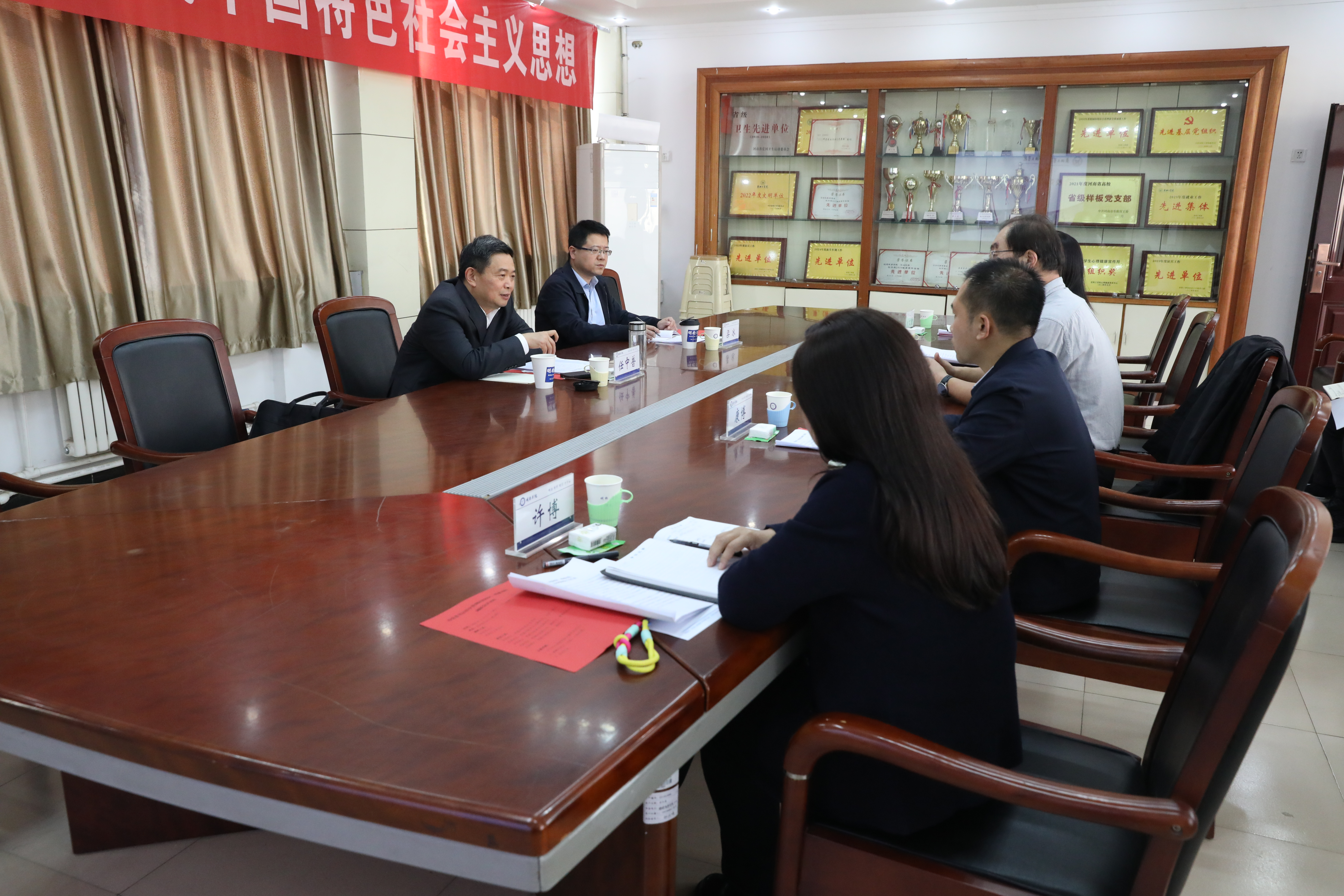 11月1日,校党委书记任中普深入洹滨校区(明德书院)调研,洹滨校区管委会领导班子、科级干部和辅导员参加了调研座谈会,校党委办公室主任梁冰陪同调研。