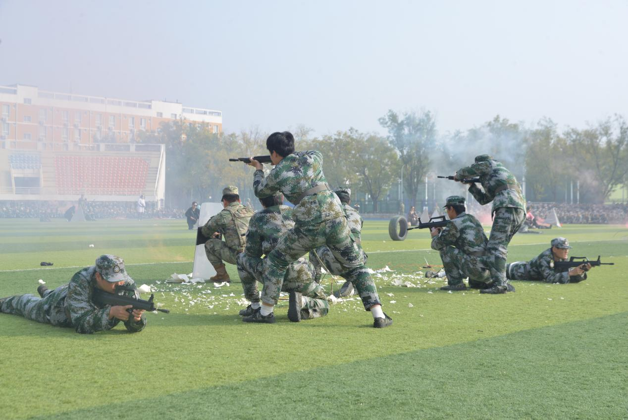 在激昂的检阅进行曲中,分列式表演率先开启。各学院新生方阵步伐整齐、口号铿锵,以规范的动作和饱满的精神状态依次通过主席台。在汇报表演环节,各参训方阵依次进行了军体拳、匕首操、刺杀操、格斗术、战术等多项科目演练,同学们动作刚劲利落、气势昂扬振奋,全面展示了为期21天的军事训练成果,彰显了安工学子奋发向的上的青春风貌。